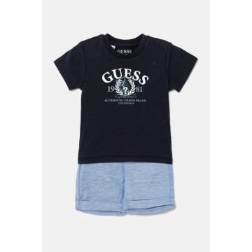 Guess set per neonati. Modello realizzato in combinazione di materiali diversi. Modello in tessuto arioso ad alto contenuto di cotone. - Taglio dritto che consente libertà di movimento. - Scollatura rotonda, a coste. - Manica corta. - Chiusura a scatto corta. - Logo del marchio sulla parte anteriore. - Fascia elastica in vita previene lo scivolamento durante il movimento. - Gamba dritta a lunghezza intera. - Tasca finta sui glutei. - Materiale: tessuto a maglia e tessuto.