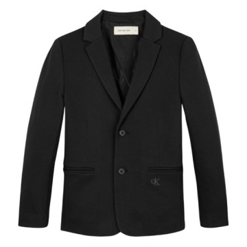 CALVIN KLEIN JEANS GIACCA BAMBINO-Giacca nera in twill monopetto, a maniche lunghe, con colletto a revers, chiusura frontale con bottoni e tasche sulla parte anteriore. È decorata con monogramma del logo ricamato sul davanti.-Composizione: 67%viscosa - 29%poliammide - 4%elastan