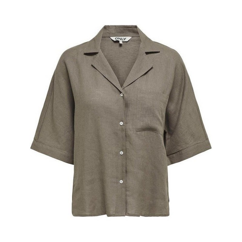 Camicia leggera e versatile da donna firmata ONLY. Modello Tokyo in lino e viscosa, perfetta per le giornate estive. Vestibilità regolare, stile minimalista ed elegante. Colore kaki neutro, abbinabile con ogni outfit. Ideale per look casual chic e giornate in ufficio.