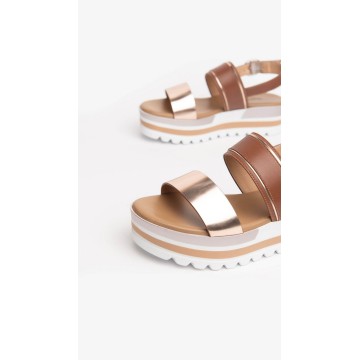Sandali in pelle e materiale tecnico laminato su fondo platform multicolor di 5 cm. Design sofisticato per un look chic e di tendenza.